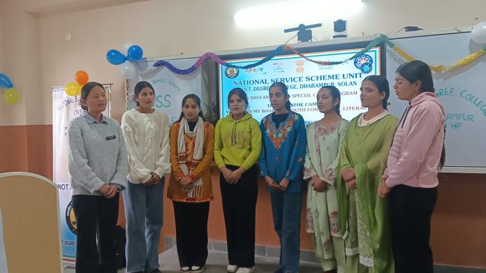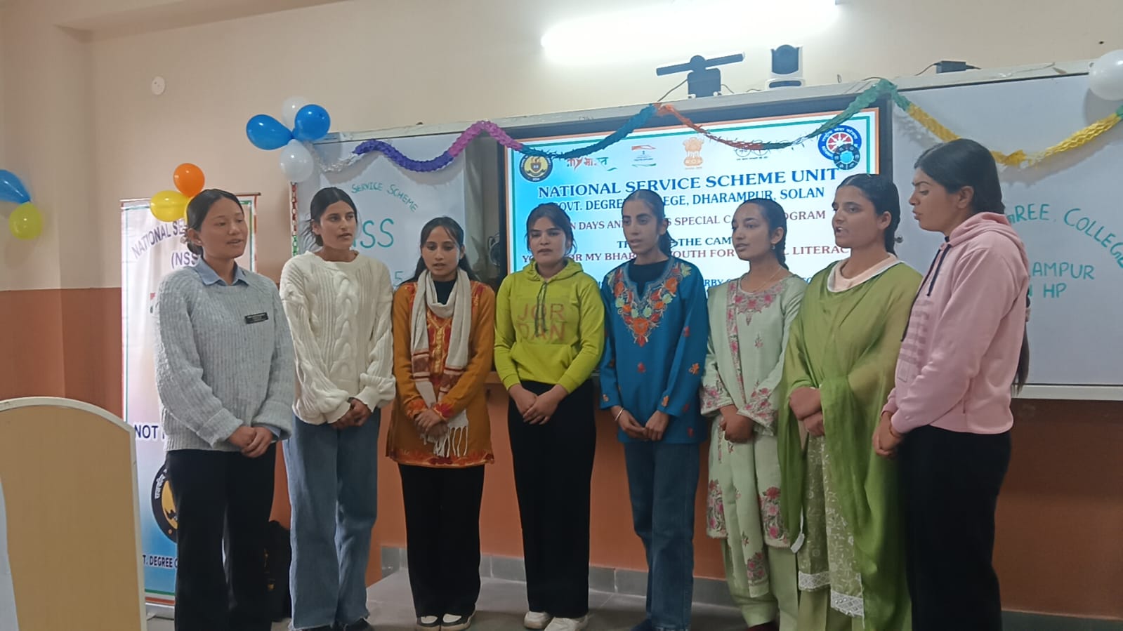 जिला सोलन स्थित राजकीय महाविद्यालय धर्मपुर में 7 दिवसीय NSS राष्ट्रीय सेवा योजना का विशेष वार्षिक शिविर आयोजित किया जा रहा है। शिविर में कॉलेज के 44 स्वयंसेवक भाग ले रहे हैं।