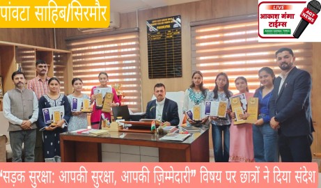 जिला सिरमौर के उपमंडल पांवटा साहिब स्थित श्री गुरु गोबिंद सिंह जी राजकीय महाविद्यालय पांवटा साहिब में रोड सेफ्टी क्लब द्वारा पोस्टर मेकिंग प्रतियोगिता का आयोजन किया गया। “सड़क सुरक्षा: आपकी सुरक्षा, आपकी ज़िम्मेदारी” विषय पर आयोजित प्रतियोगिता का उद्देश्य छात्रों में सड़क सुरक्षा के प्रति जागरूकता का प्रसार करना था। कार्यक्रम की महाविद्यालय के प्राचार्य डॉ. जगदीश चौहान ने की।